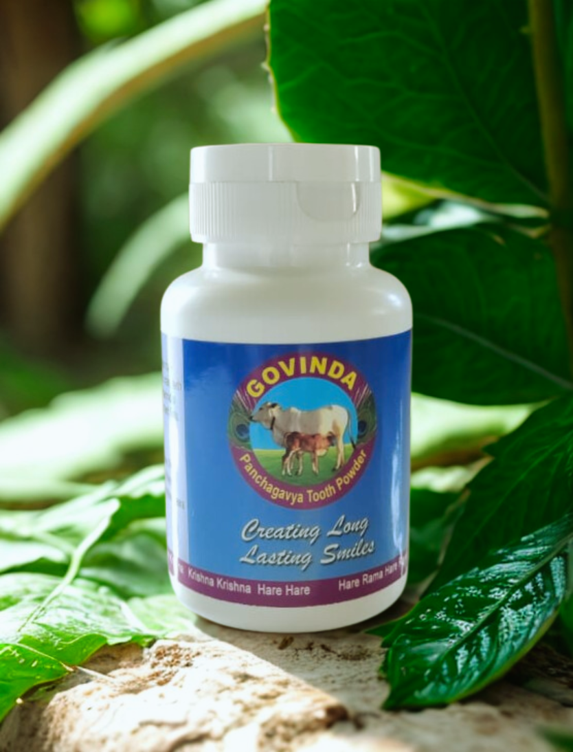 Our Panchagavya Tooth Powder is a traditional Ayurvedic formulation made using natural herbs and Desi cow-based ingredients. It helps maintain oral hygiene, strengthens teeth, and keeps gums healthy.